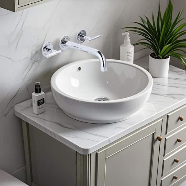 Double Handle Wall Mounted Bathroom Faucet in Polished Chrome
