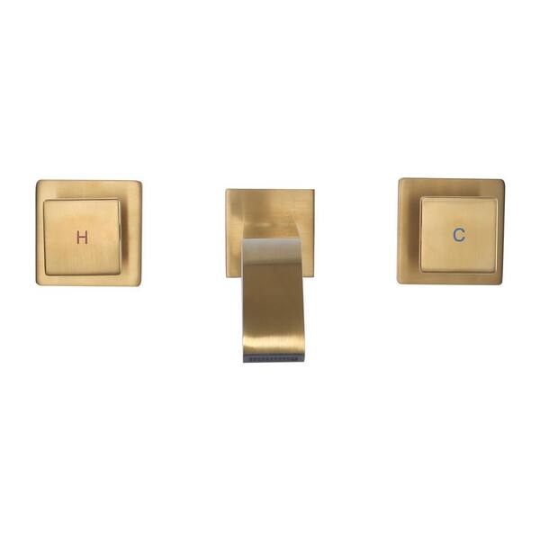 Double Handle Wall Mounted Waterfall Bathroom Faucet in Brushed Gold