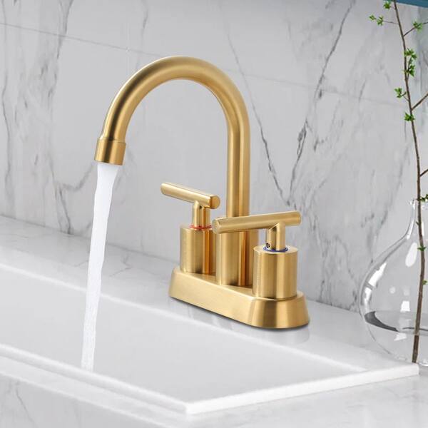 Modern 4 in. Centerset Double Handle Bathroom Sink Faucet with Pop-Up Drain and Removable Aerator in Brushed Gold