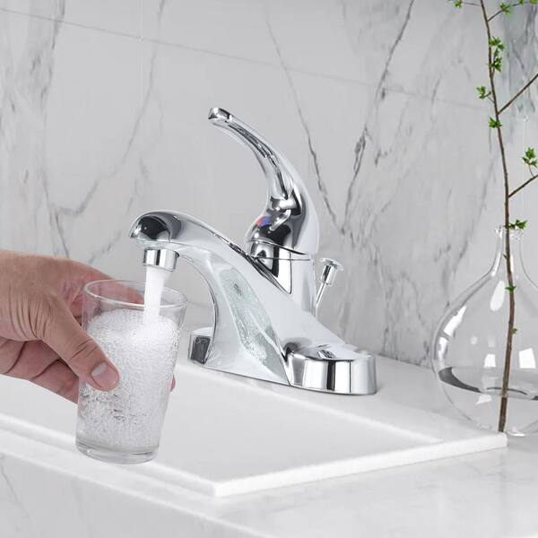 Modern 4 in. Centerset Single Handle Bathroom Faucet, Low Arc Basin Faucet with Lift Rod Drain Kit in Polished Chrome