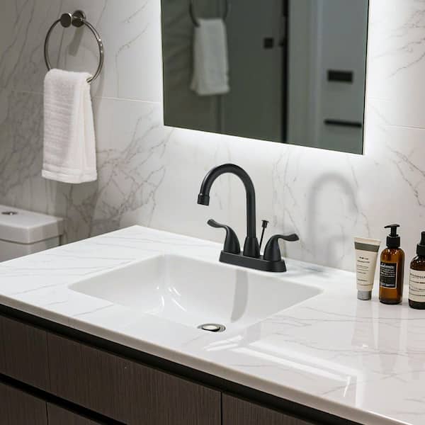 Modern Double Handle 4 in. Centerset Bathroom Faucet with Lift Rod Drain Assembly in Matte Black