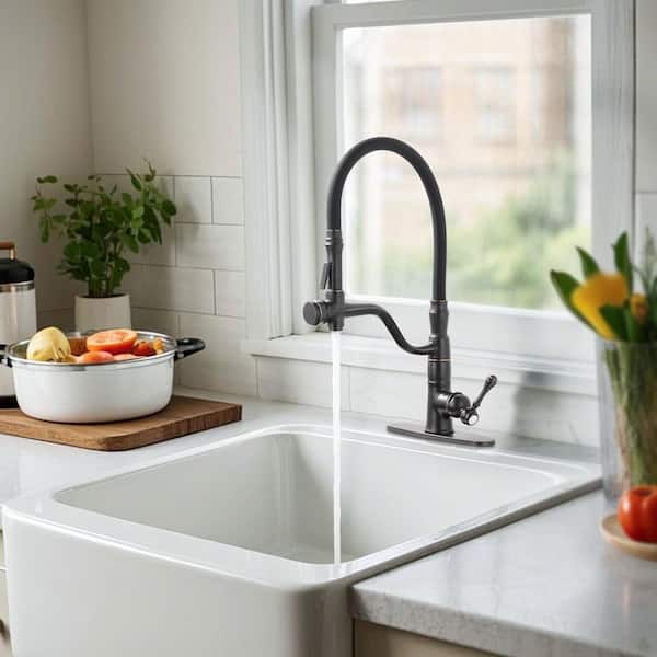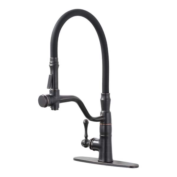 Modern Single Handle Pull Down Sprayer Kitchen Faucet with Pre-installed Hose and Deckplate in Oil Rubbed Bronze