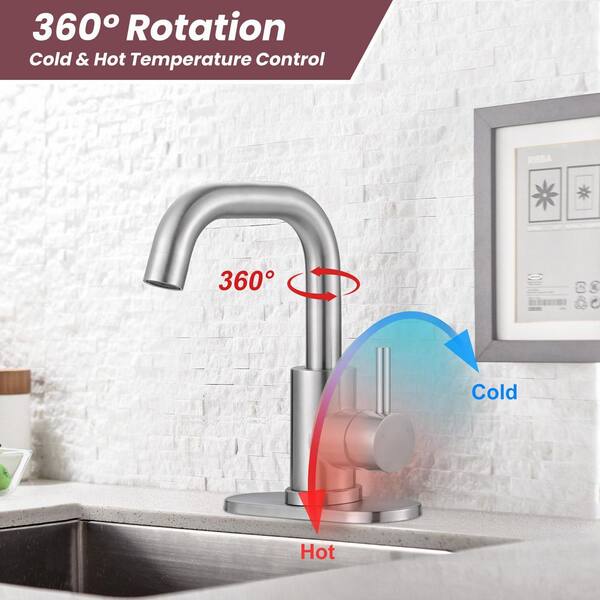 Modern Single Handle Stainless Steel Bar Faucet with Deck Plate and Supply Lines in Brushed Nickel
