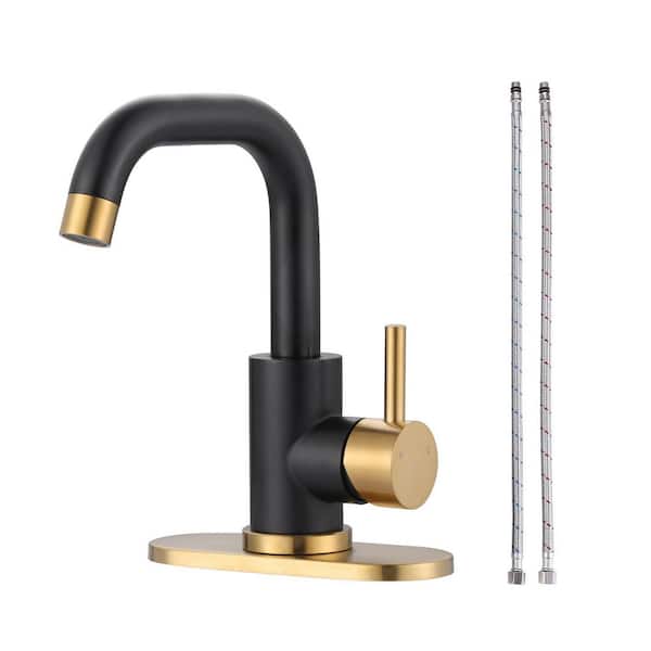 Modern Single Handle Stainless Steel Bar Faucet with Deck Plate and Supply Lines in Gold and Black