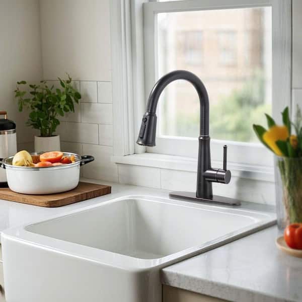 Oil Rubbed Bronze 15 in. H Single Handle Pull Down Sprayer Kitchen Faucet with 360° Spout Swivel and 3-Spray Mode