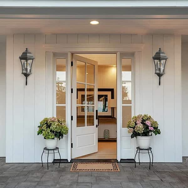 Retro Style 1-Light Hardwired Black Outdoor Wall Lantern Sconce with Auto Photo Sensor and No Bulb Included (2 Pack)