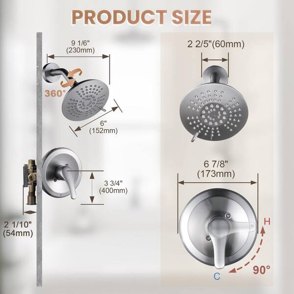 Single Handle 5-Spray Shower Faucet 1.8 GPM in. with 360° Swivel in. Brushed Nickel (Valve Included)