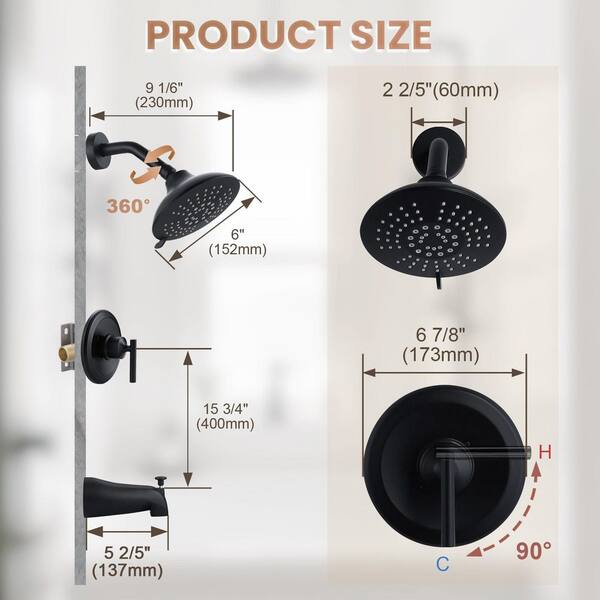 Single-Handle 5-Spray Tub and Shower Faucet 1.8 GPM with Stops in. Matte Black with Valve Included