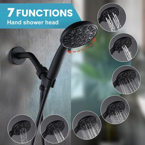 Single Handle 7-Spray Tub and Shower Faucet 1.8 GPM in. Matte Black with Pressure Balance Valve Included