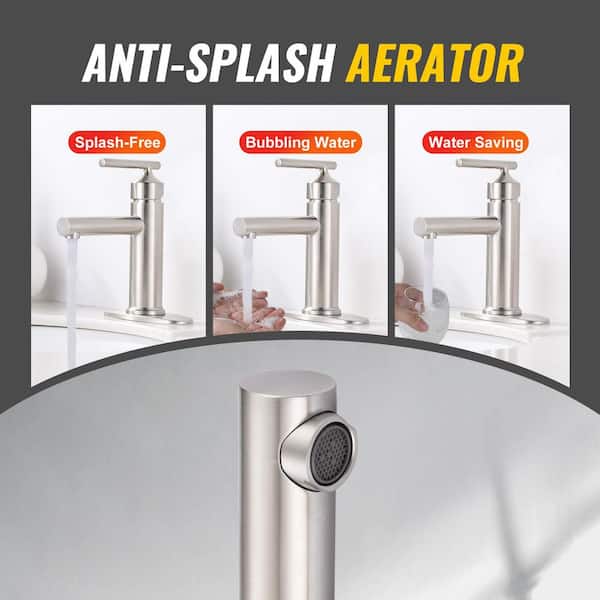 Single Handle Single Hole Bathroom Faucet with Pop-Up Drain and 2 Water Inlet Pipes Included in Brushed Nickel