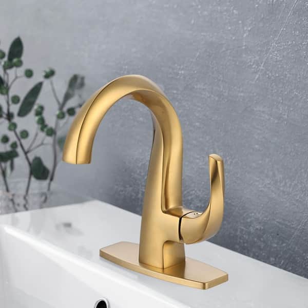 Single Handle Single Hole Bathroom Faucet with Pop-Up Drain and Deck Plate Included in Brushed Gold