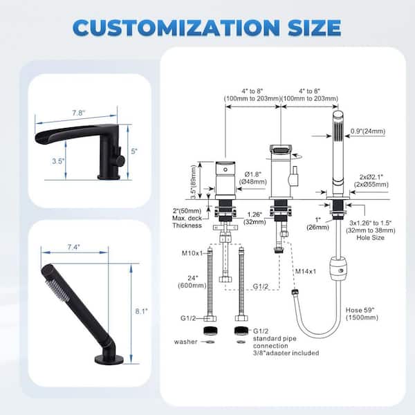 Single-Handle Tub Deck Mount Roman Tub Faucet with 360° Swivel Waterfall Spout with 59 in. Hose in Oil Rubbed Bronze