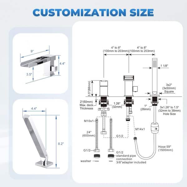 Single-Handle Tub Deck Mount Roman Tub Faucet with 360° Swivel Waterfall Spout with 59 in. Hose in Polished Chrome