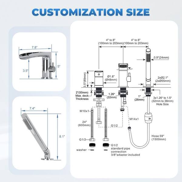 Single-Handle Tub Deck Mount Roman Tub Faucet with 360° Swivel Waterfall Spout with 59 in. Hose in Polished Chrome