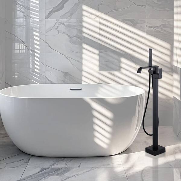 Single-Handle Waterfall Freestanding Tub Faucet with Handheld Shower in. Matte Black