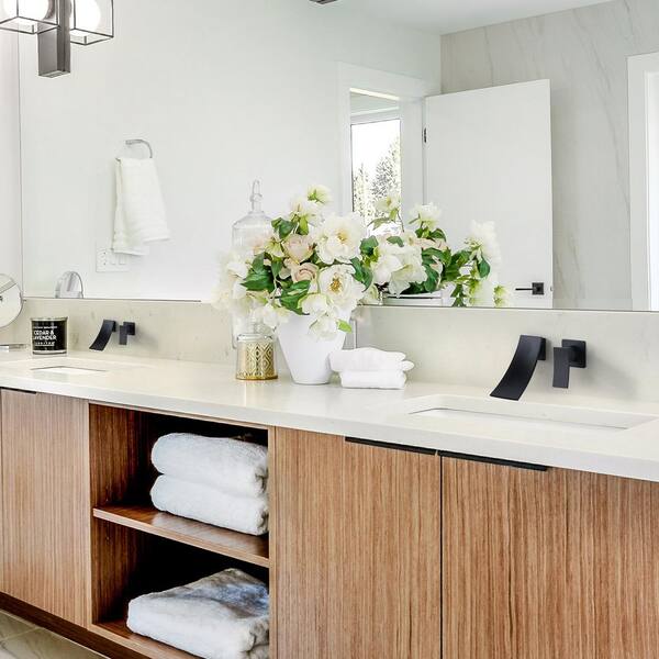 Single Handle Waterfall Wall Mounted Bathroom Faucet in Matte Black