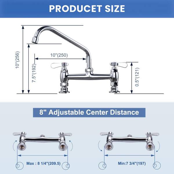 • Adjustable center distance fits various sink configuration