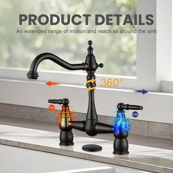 Vintage 2-Handle High Arc Bridge Kitchen Faucet with Hole Cover in Oil Rubbed Bronze