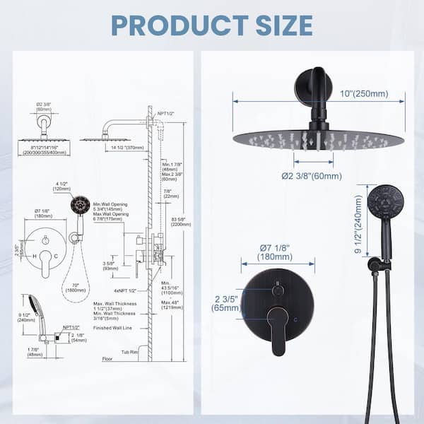 Wall Mount Dual Single Handle 2-Spray Shower Faucet 1.8 GPM with 10 in. Round Shower Head in Oil Rubbed Bronze