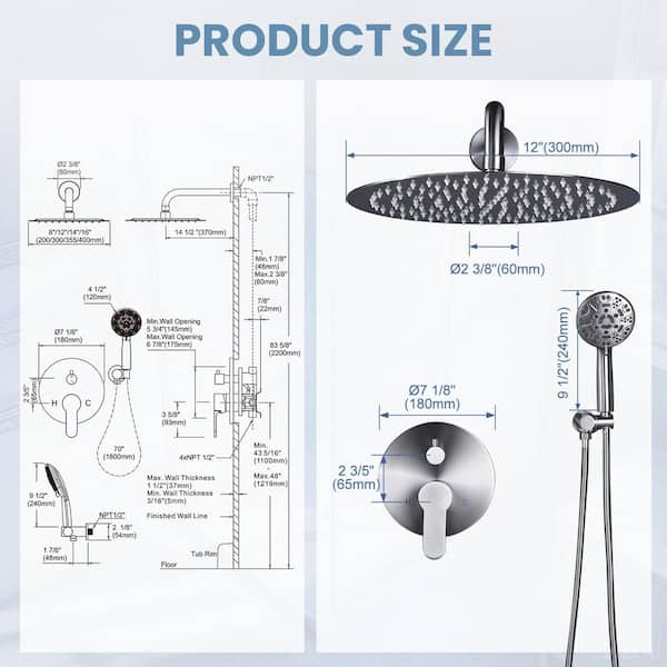Wall Mount Dual Single Handle 2-Spray Shower Faucet 1.8 GPM with 12 in. Round Shower Head in Brushed Nickl