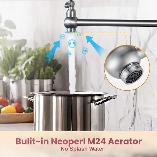 Wall Mount Pot Filler with Double Handle in Brushed Nickel