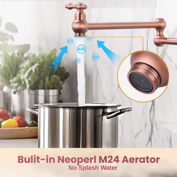 Wall Mount Pot Filler with Double Handle in Copper