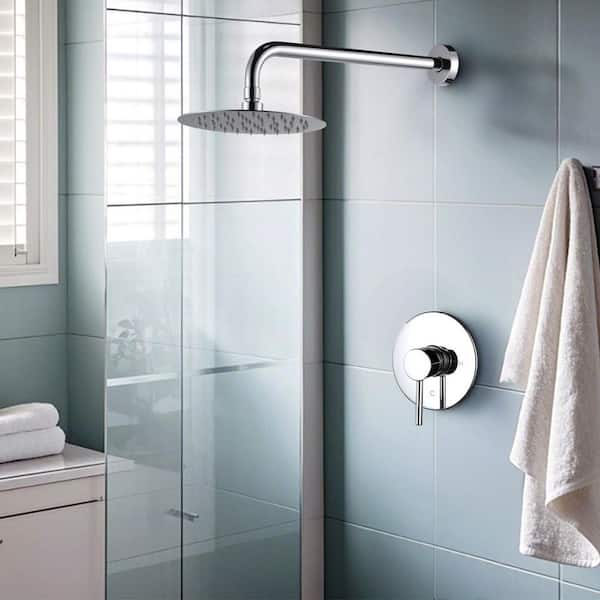 Wall-Mount Single Handle 1-Spray Shower Faucet 1.8 GPM with Pressure Balance Valve in Polished Chrome