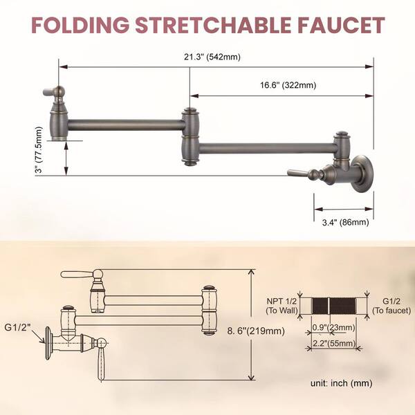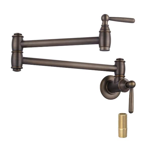 Wall Mounted Pot Filler 2-Handles Kitchen Faucet with 360° Spout Swivel in Antique Bronze