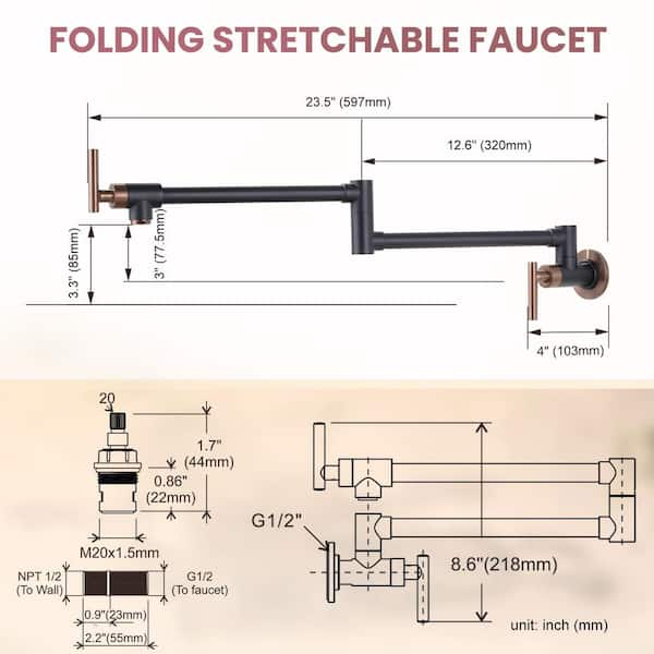 Wall Mounted Pot Filler 2-Handles Kitchen Faucet with 360° Spout Swivel in Rose Gold and Black
