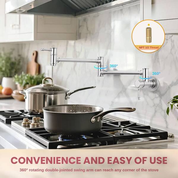 Wall Mounted Pot Filler with Double Handle in Brushed Nickel