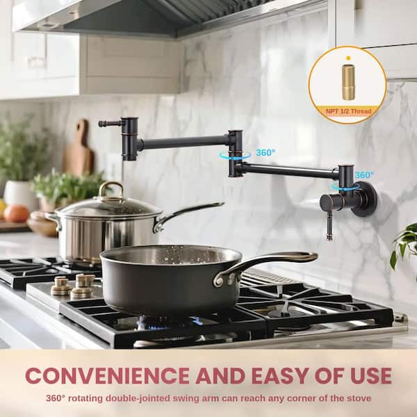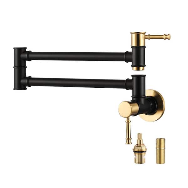 Wall Mounted Pot Filler with Double Handle in Gold and Black