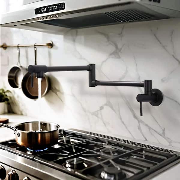 Wall Mounted Pot Filler with Double Handle in Matte Black