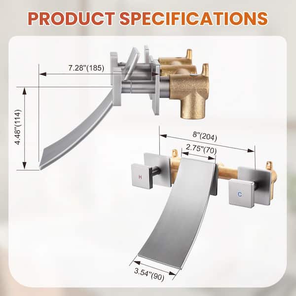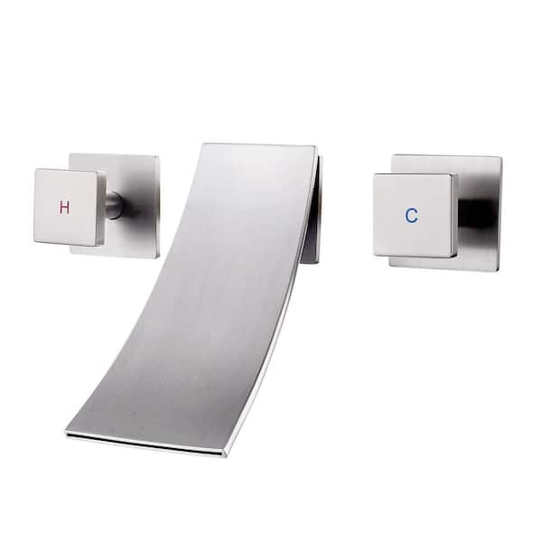 Waterfall 2-Handle Wall Mounted Bathroom Faucet in Brushed Nickel