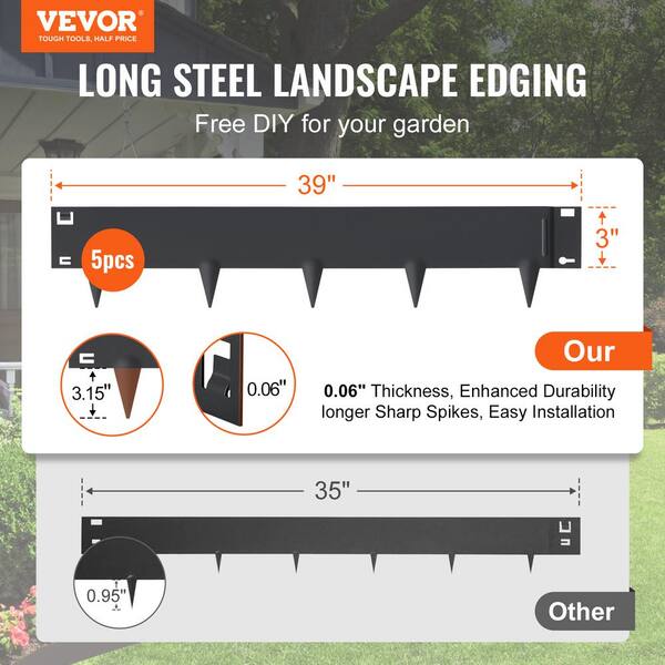 0.59 in. W x 39 in. L x 3 in. H Black Steel Landscape Edging Steel Garden Edging Borders Strips Hammer Edging