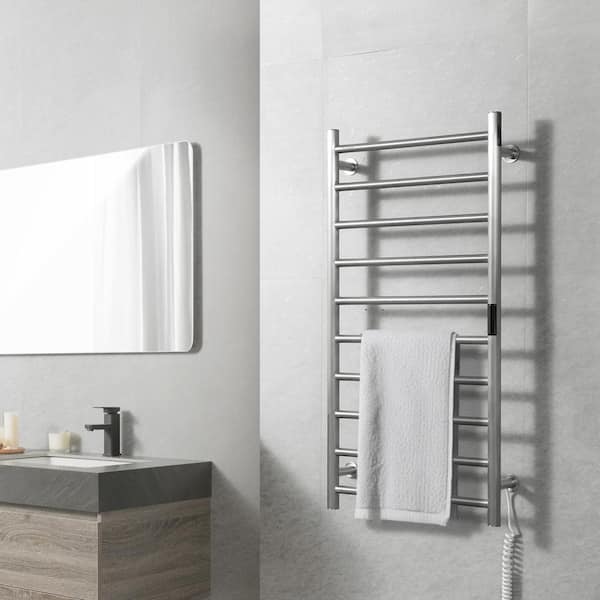 10 Bars Towel Warmer Rack, Wall Mounted Heated Towel Rack for Bathroom, IPX5 Waterpoof Towel Heater Rack, Silver