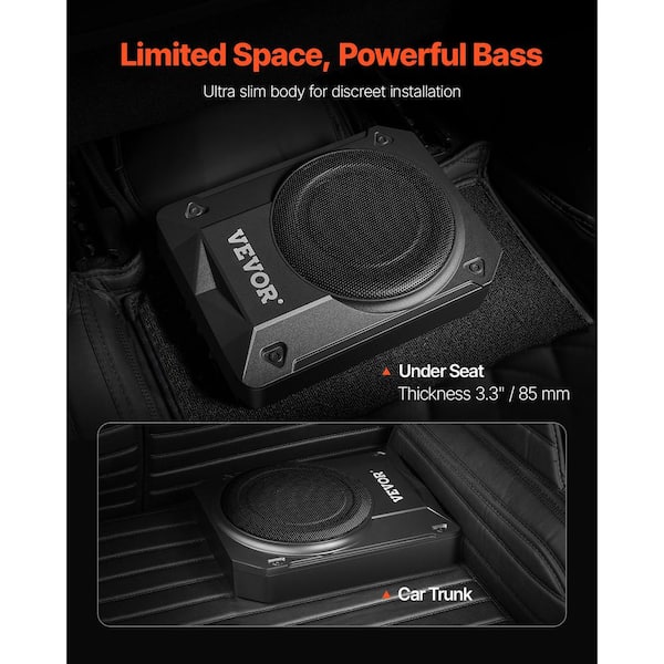 10 in. 400W Underseat Car Subwoofer, Slim Powered Car Subwoofers Under the Seat Low Profile Audio Sub Built-in Amplifier