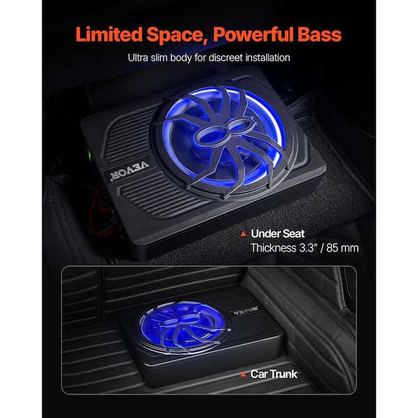 10 in. 440W Underseat Car Subwoofer, Slim Powered Car Subwoofers, Low Profile Audio Sub Under the Seat with Amplifier