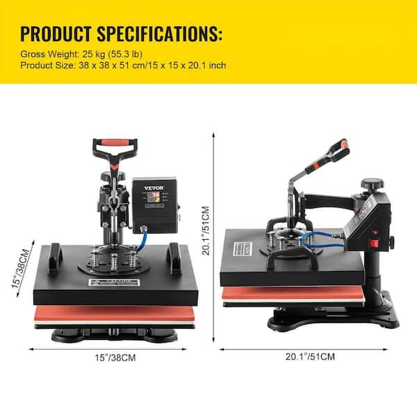 15 in. x 15 in. Heat Press Machine ETL/FCC Certificated 6 in 1 Combo Swing Away T-shirt Sublimation Transfer Printer