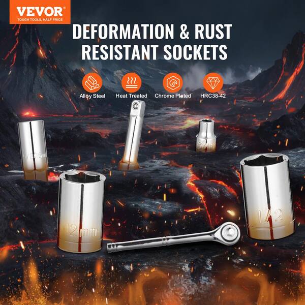 221-Piece Mechanics Tool Set, 1/4 in. and 3/8 in. Drive Sockets, SAE and Metric Mechanic Tool Kit with Bits, Wrenches