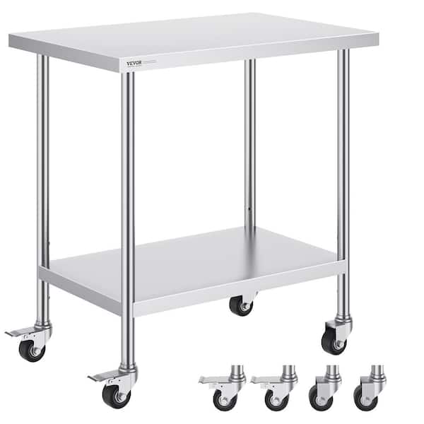 24 x 36 x 38 in. Stainless Steel Commercial Kitchen Prep Table with 4-Wheels 3-Adjustable Height Levels Silver