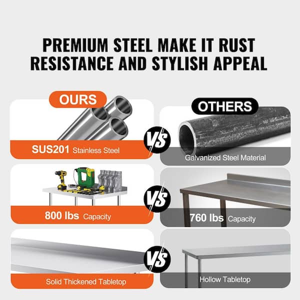 24 x 48 x 40 in. Stainless Steel Commercial Kitchen Prep Table with Casters Metal Table with Adjustable Height Silver