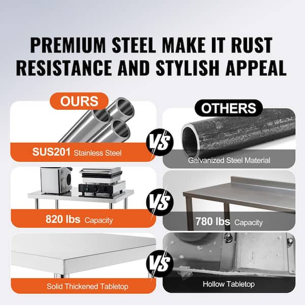 30 in. x 36 in. x 38 in. StainlessSteel Commercial KitchenPrep Table w/4-Wheels 3-Adjustable HeightPrep Worktable Silver