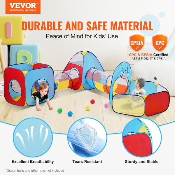 5 in. 1 Kids Play Tent with Tunnel Basketball Hoop for Boys Girls Babies and Toddlers Indoor Outdoor Pop Up Playhouse