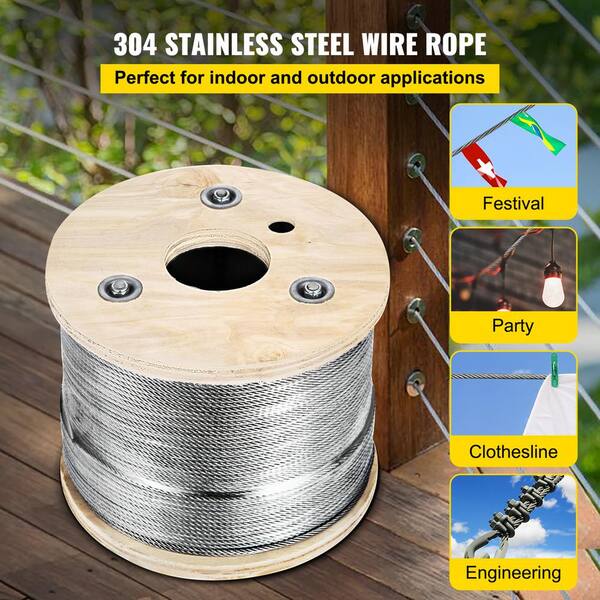 500 ft. x 3/16 in. Cable Railing Kit 3700 lbs. Load T304 Stainless Steel Wire Rope Winch with 7x19 Strand for Deck Stair