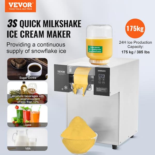 6172 oz. /24 H Commercial Snowflake Ice Machine Silver Snow Cone Machine Ice Shaver Machine with LED Touchpad Controls