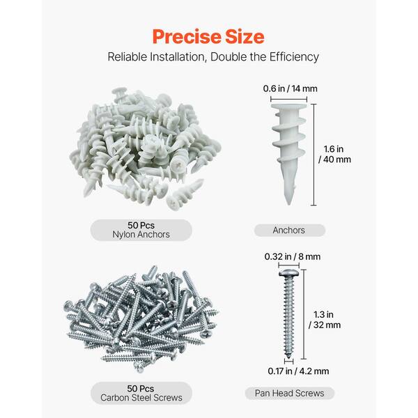 8 in. Self Drilling Drywall Anchors, 100 PCS Dry Wall Anchors and Screws, No Drill Hole 1 Pack Anchor Length 1.57 in.
