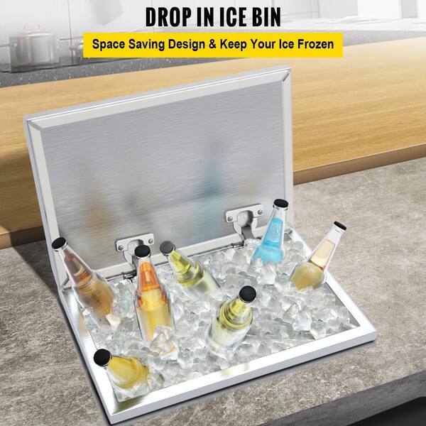 87.2 Qt. Drop in Ice Chest 28 in. x 18 in. x 17 in. Stainless Steel Ice Bin with Hinged Cover for Outdoor Kitchen