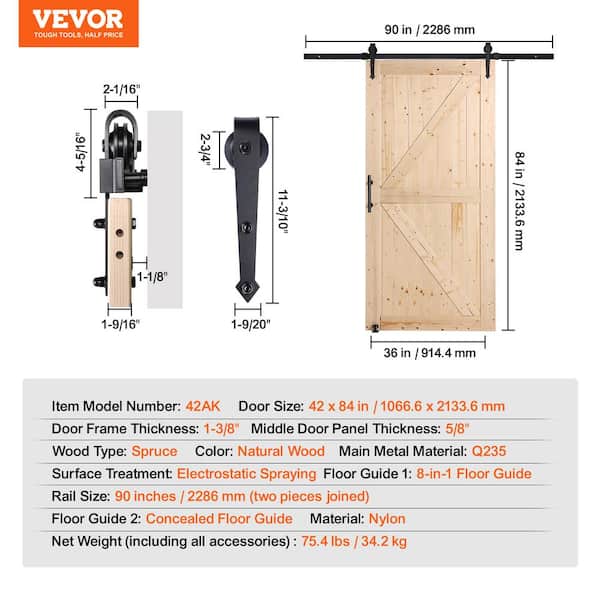 Barn Door and Hardware Kit, 42 x 84 x 1.38 in. Wood Sliding Barn Door, Smoothly and Quietly, Access Door