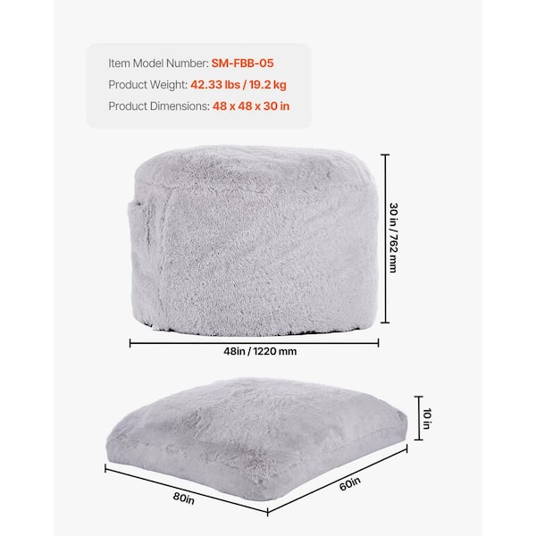 Bean Bag Bed Chair, Plastic, Convertible Chair from Bean Bag to Lounge, Outdoor Rocking Chair with Cushion, Grey