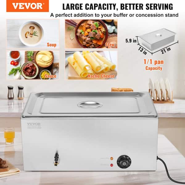 Commercial Food Warmer, 1 x 19QT. Electric Steam Table, 1200W Professional Countertop Stainless Steel Buffet Bain
